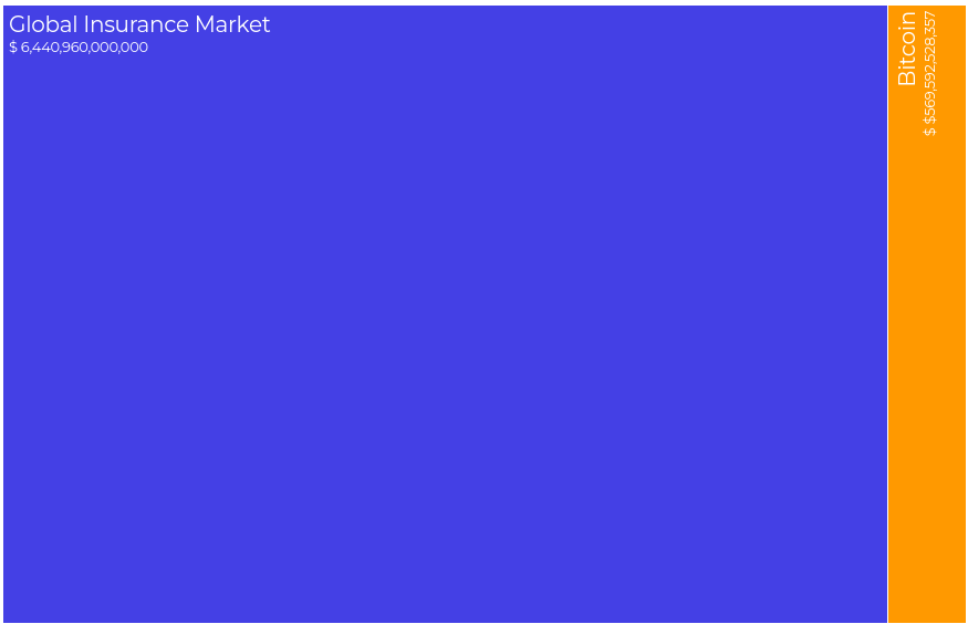The insurance industry is vast and encompasses numerous companies providing a wide range of coverage. To me, it is absolutely mind-boggling to see that Bitcoin already represents roughly 1/11 of the worldwide insurance market, at the time of writing this article!